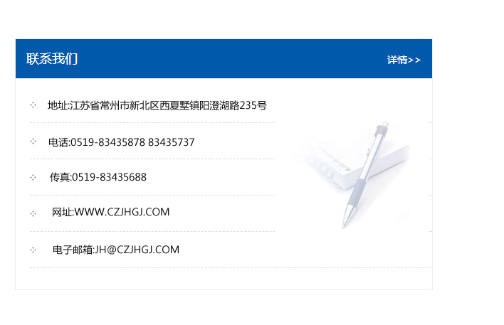 傳真:0519-83435688    郵編:213135    網址:WWW.czjhgj_com.scldtz.com    電子郵箱:JH@czjhgj_com.scldtz.com